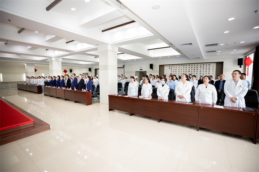 医院党委书记石贵军,院长杨启光,党委副书记周艳,副院长钱锐、曹亚丽,纪委书记王妍,副院长杨娜,总会计师桑玉梅出席大会。护理部主任朱莉主持会议。