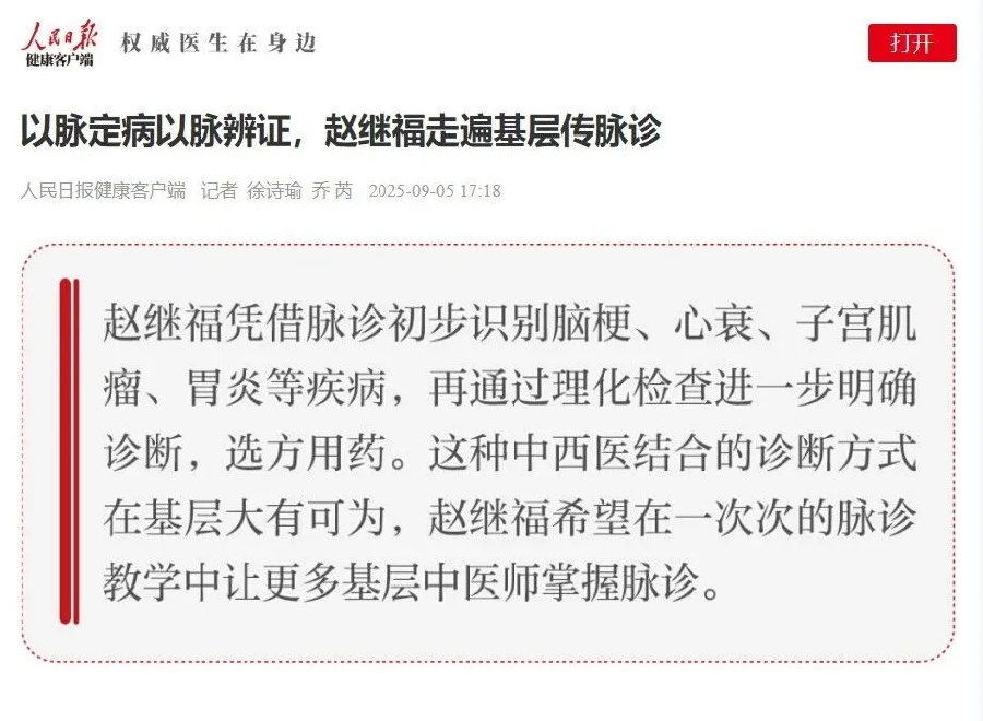 赵继福教授的事迹与学术成就获得各级媒体广泛关注。《新华每日电讯》《中国中医药报》等均对其进行专访。他亦受邀参加北京卫视《养生堂》等节目,向大众普及中医理念。《吉林日报》、长春新闻频道等持续报道其临床实绩与基层活动,传播其“未病先防”等健康观点,全面展现了其专业影响力与社会责任感。