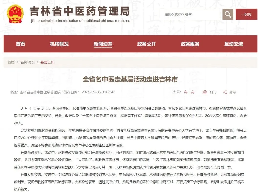 赵继福教授从医五十余载,始终坚守临床一线,以精湛医术造福百姓,以仁心厚德诠释医者情怀,成为吉林省中医药领域一张闪亮的名片。