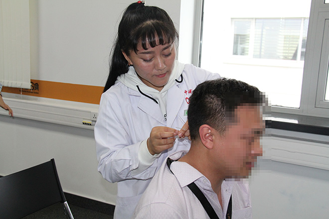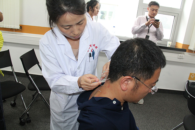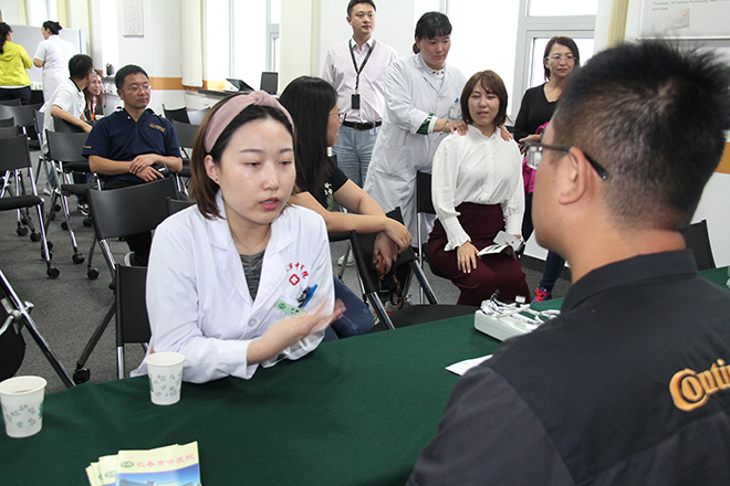 应大陆汽车电子(长春)有限公司净月分公司的邀请,9月13日下午,由红桃视频 治未病中心的王玲玲医生带队到该公司开展题为“颈椎病的防治”讲座及义诊活动,用中医特色疗法为职工现场进行治疗和调理。