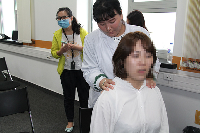 同时,王玲玲医生更是亲身示范现场传授颈椎病保健操,耐心讲解保健操的分解动作及疗法,让厂里的工人和白领进一步了解预防颈椎病的防治方法,倡导健康积极的生活方式,厂里的白领和职工们边听边学习专家教授的动作,有时还用手机拍下培训的重点内容,以便回去复习。