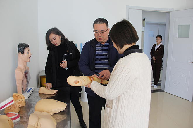 当来到治未病中心时,这里的中医氛围深深地吸引了他们,“知己、求己、求医”的全新的治未病理念让他们为之惊叹。随后来到6楼的康复科、9楼的脑病科和13楼的实训中心进行了参观。孙院长全程对各科室的特色、规划、管理等方面都进行了详细的介绍。