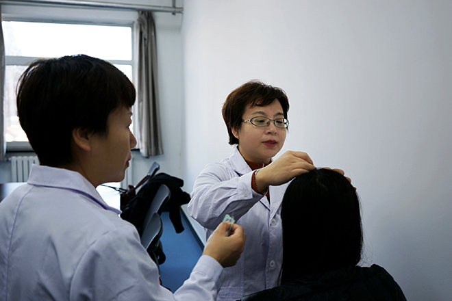 胡少红主任现场施针,让“朱氏头皮针”为更多的患者解决问题。
