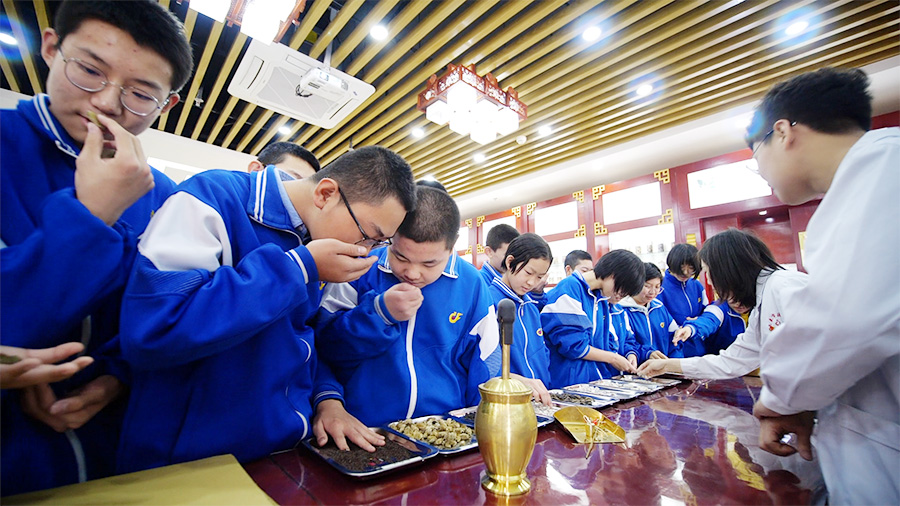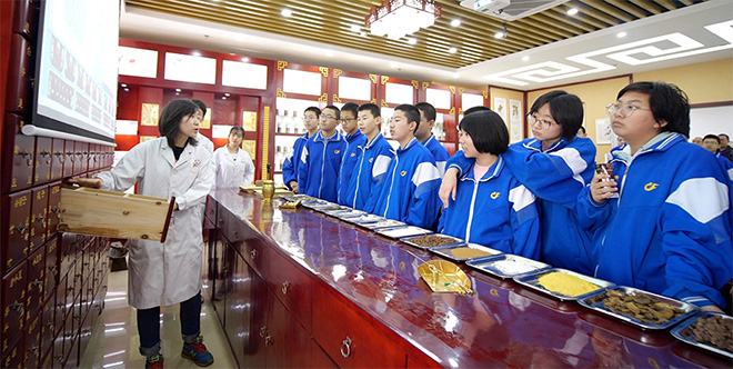 “这个东西的医学名称是辛夷呀,我虽然总能见过,可还是头一次知道它的学名。”走进红桃视频 的实训中心的中医药房,一群初中生正在热火朝天地议论着。现场,药师先为同学们简要介绍了药房里装药的药篼子和投影的神奇之处,在中药材展示区,长长的桌面上摆放着白术、当归、黄芪、辛夷等药材,还有已经研磨好的一些药材,同学们不时拿起一小片药材闻一闻,学到这些中医新知识开心极了。看着学生们求知的眼神,一旁的医生及药师也耐心地一一解答。听着专业医生的讲解,学生们也初步了解了一些中药材的药性及药效,认识了身边常见的草药,知道了中医药学是中华文明的重要组成部分,同时也培养学生们学习传统中医的兴趣。