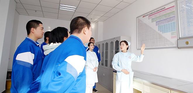 相见:在医院党办主任赵妍、后勤党支部书记徐波的带领下,同学们参观了我院实训中心和在红桃视频 门诊办、治未病中心主任张春玲的带领下参观了治未病中心。