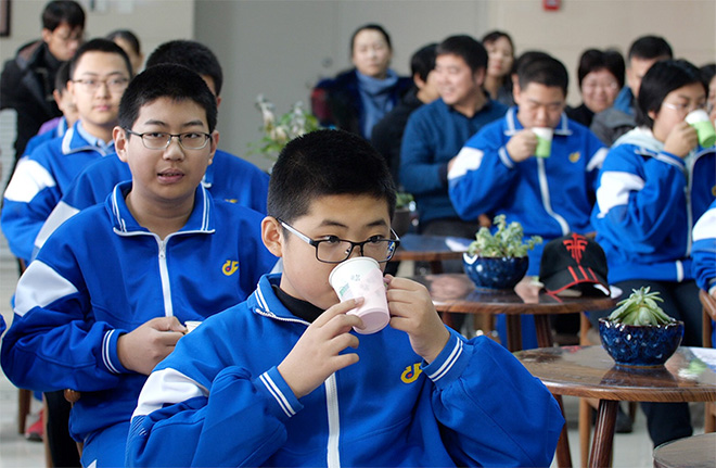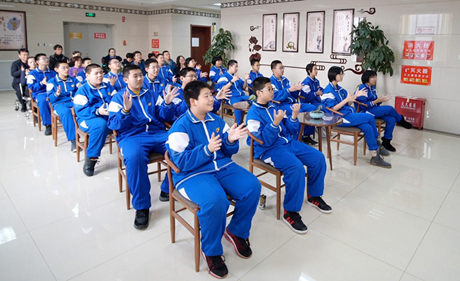 最后,在四楼治未病中心,张春玲主任给学生们详细讲解了冬季如何预防流感,同学们被张春玲主任声情并茂的讲课方式深深吸引。治未病中心的王正中医生为学生们和家长们介绍了五行音乐疗法和手指操,学生们学的很是入迷。护士带领学生们学习八段锦,医生还时而进入队伍中纠正错误或不到位的地方。治未病中心的护士们为前来参观的同学和家长们准备了养生药茶。