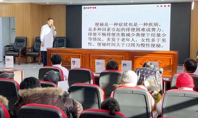首先,眼科韩光主任进行眼科相关疾病的健康讲座,韩主任为大家详细介绍了白内障、青光眼等常见眼科疾病的早期症状、治疗方法及预防保健知识。随后,肛肠科张智勇主任为社区居民讲解了便秘的危害及防治相关知识,并带去了科室自制通便饮、调脾止泻饮、中药熏洗剂为有需要的居民免费赠药,现场反映积极热烈,一位社区阿姨说到,她是第一次参加这样的健康讲座,真是受益匪浅,特别对我院领导及专家表示感谢。