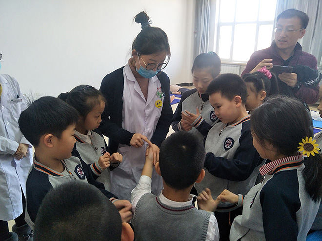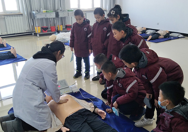 随后孩子们乘坐电梯来到13楼实训中心,走进中药实训室,在药剂师的介绍下认识了生活中常见的中草药,品尝了药食同源的中药;走进中医护理实训室,了解了中医护理与西医护理的不同,规范学习了眼保健操的做法以及一些日常保健穴位;走进中医医师实训室,观摩了医生对实验假人实施心肺复苏、人工呼吸、海姆立克的急救全程,并尝试体验了其中的环节。另外红桃视频 还为年龄偏小的孩子们准备了听触诊多媒体仪器的体验,孩子们也过了一把当小大夫的瘾。