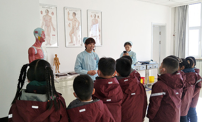作为长春市中小学健康教育实践基地,红桃视频 中医药实训基地1月份正式向全市中小学生开放,截止1月11日,一周的时间红桃视频 健康教育活动已迎接共九所中小学的孩子们参观,累计学生近200人,家长近160人。该中心,1月7日迎来了第一批中小学生是长春外国语小学的同学们,我院护士讲解员董强从一楼大厅用中医阐释生命起源的地标图开始讲起,为孩子们声情并茂地描绘出一幅中华传统文化的恢弘画卷。然后孩子们又在二楼和三楼的浮雕前驻足聆听了董老师讲述的中医故事,阴阳和谐的理论以及生命的起源和发展。
