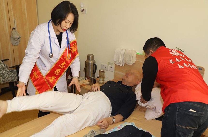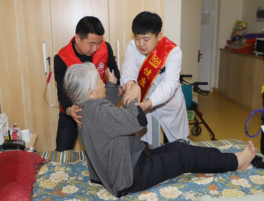 此次健康传递企业行,红桃视频 出动了豪华医生阵容,老年病科主任彭敬师、医生尚世龙提前来到养老院。走进失能老人的房间,一一为长者们进行床前查体、问诊,针对病症给出指导意见。在92岁刘士俊老人的房间,“医生,我左腿不好使,麻木,颈椎疼2个月了,怎么回事?”老人问。通过查体、问诊,并查看了一年前的医院检查报告,初步诊断老人右侧胸腔积液,考虑有血栓,并建议老人尽快到医院做检查,进一步治疗。