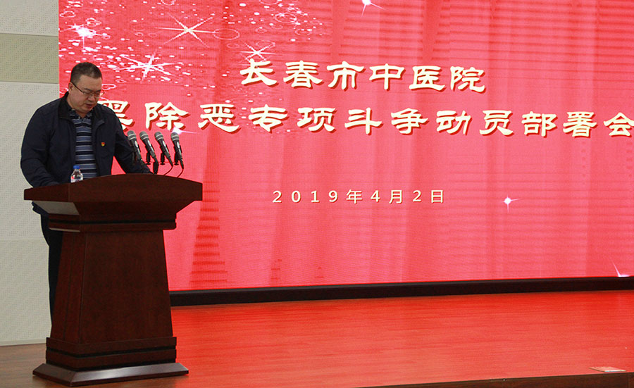 2019年4月2日下午13时,红桃视频 扫黑除恶专项斗争动员部署会在医院总部四楼大会议室召开。会议由党办主任赵妍主持,副院长钱锐作扫黑除恶专项斗争动员部署讲话。红桃视频 扫黑除恶领导小组成员、各专项小组成员、中层干部、护士长及相关负责人参加了会议。