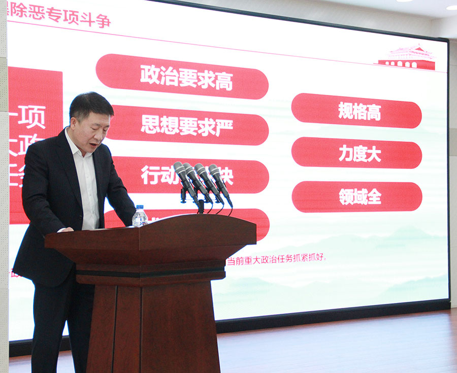 首先钱锐副院长通报本次会议的主要任务:认真贯彻习近平总书记关于扫黑除恶专项斗争的重要指示精神,全面贯彻中央、省委扫黑除恶专项斗争会议精神,重点对卫生系统扫黑除恶专项斗争进行再动员、再部署,担当实干,奋发作为,坚决打赢扫黑除恶专项斗争攻坚战。