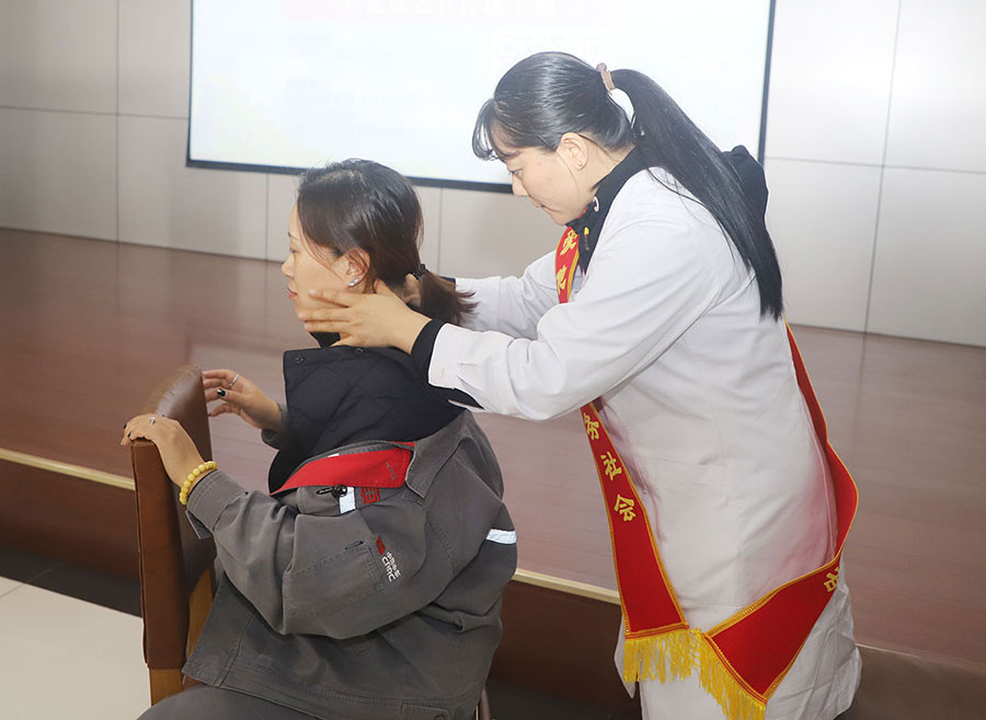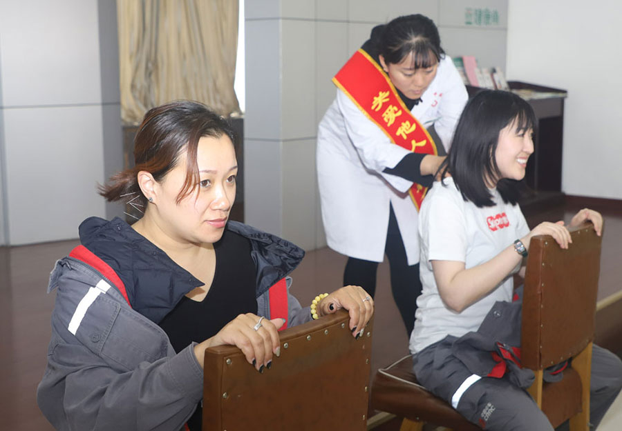 终于等来了义诊环节,大家围在刘丽敏主任身边,把自己平时烦恼又不好诉说的病说出来。“主任,我50多岁了,月经不正常,要么两三个月来一次,要么一来就没完没了,出血量挺大的。”一位女职工说出自己的病情。“这是更年期出现的症状,建议你快点到医院去检查,如果再发现月经血量大,必须去医院,防止大出血。”有了妇科专家,女职工们的问题一一被解答了。这边有妇科专家义诊,那边有治未病中心的医生们为女职工们针灸、按摩,用中医特色疗法,给女职工们解决健康问题。