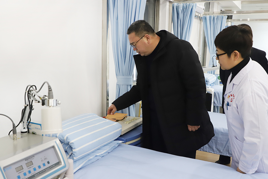 孙良金院长重点询问了康复诊疗方式、方法、仪器的引进、医护人员组成,对康复科建设给予充分肯定,并建议科室治疗方法可以再精细化,多引进小型、实用型康复治疗仪,让更多康复患者受益。