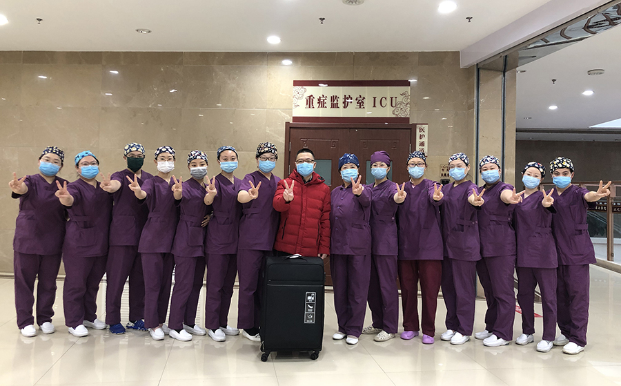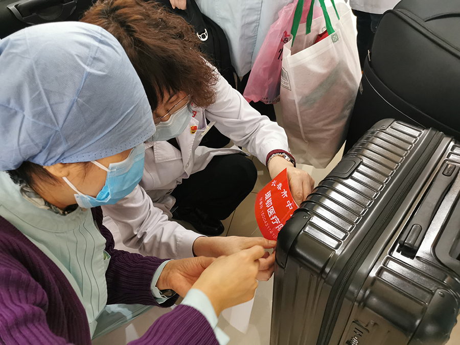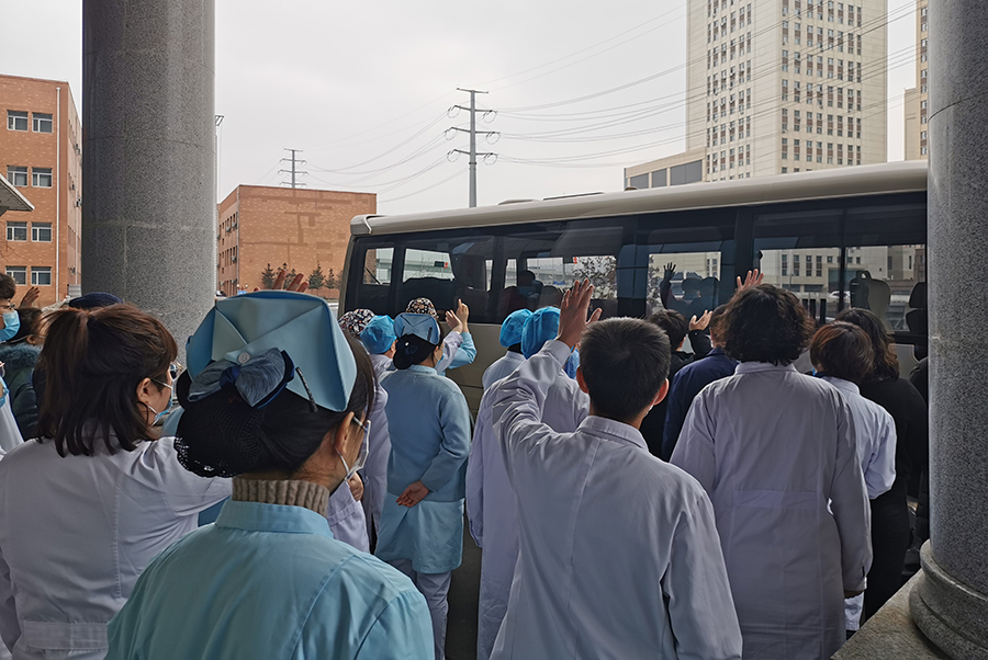医院领导班子为他们举行了简短的壮行仪式,党委书记、院长孙良金叮嘱他们在积极救治患者的同时,一定要做好自身防护,医院将做好他们的坚强后盾,期待他们早日完成使命,平安归来。