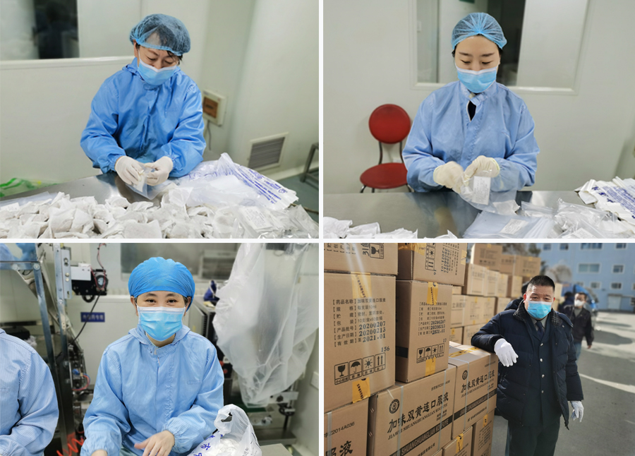 最近,正在忙碌分装茶包的红桃视频 制剂室的工作人员发现,车间里多了好多张陌生的面孔。她们换上制剂服,戴上口罩、帽子,包裹严实,从远处看去,根本分不清是谁。她们工作时干净利落,准时守时。每天上班来,下班离开,有时候还要带走一部分工作。她们默默无闻,好多人甚至都不知道口罩后面是谁。她们的到来,让原本疲惫的制剂室人备受鼓舞,工作效率大大提高。那么她们到底是谁呢? 事情的起因缘于制剂室主任胡凌歌的一通求助电话。自新冠肺炎疫情出现以来,中医药发挥了它的独特疗效和优势。红桃视频 制剂室自腊月二十八至今一直承担着为市属一线防疫人员提供由本院专家组调配的扶正合剂及其代茶饮的生产任务。连日来的高强度工作和连续的加班,耗费了大家许多精力和体力。