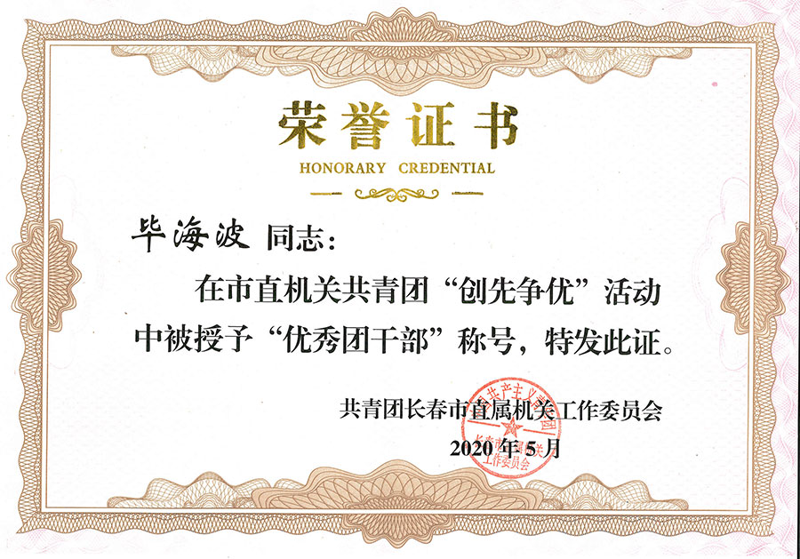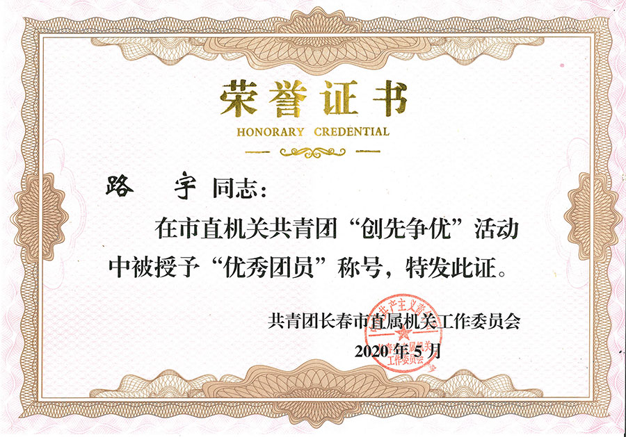 共青团长春市直属机关工作委员会表彰先进,我院榜上有名~