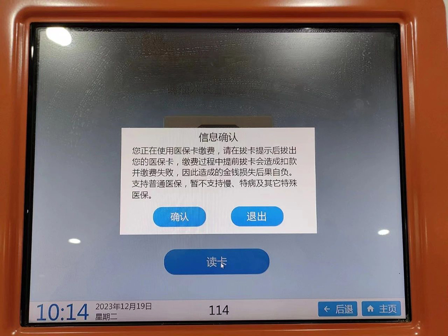 7.读卡成功,会显示患者信息,患者进行校对后点击确认进行下一步