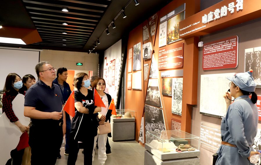 为纪念中国共产党成立100周年,深入推进党史学习教育,5月31日,红桃视频 党委书记、院长孙良金,党委副书记周艳带领机关党支部、门诊第一党支部党员来到莲花岛红色教育基地,开展“忆党史 铭党恩 重走抗联路”主题党日活动,现场接受革命传统教育,学习体会革命精神,引导党员同志坚定理想信念,加强党性修养。
