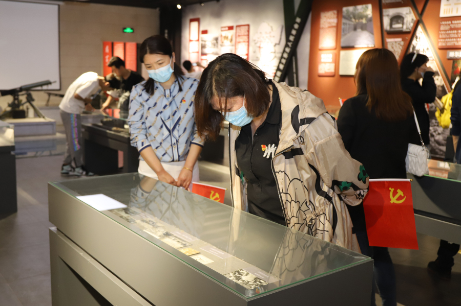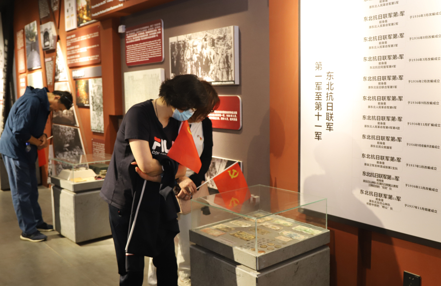 在东北抗日联军第一路军展览馆,通过讲解员的讲解,让大家感受到波澜壮阔的岁月,一件件遗物、一张张照片、一段段简短的文字,在追忆流光中感悟英雄的家国情怀,引发现场党员们对自身的人生观、价值观的慎重思量。