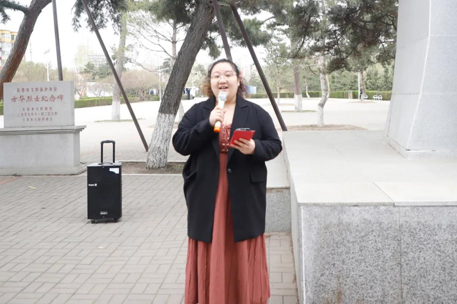 苍松翠柏环绕的胜利公园庄严肃穆,方华烈士纪念碑威严矗立。红桃视频 团委书记毕海波首先介绍了方华同志的个人事迹,大家列队整齐、神情肃穆,认真聆听,学习了革命先辈们的大无畏精神。优秀团员代表高立馨向方华烈士墓献花,现场全体团员向方华烈士默哀。