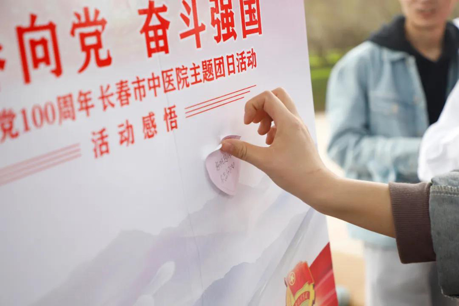 随后,优秀团员代表董强在团旗下发言,她号召大家:向先辈学习,严格要求自己,勇于付出,以团歌为号召、以团旗为标杆、以团徽为荣耀,在平凡中见伟大,在积累中求理想,为中医院的美好明天而奋斗!