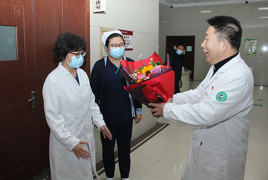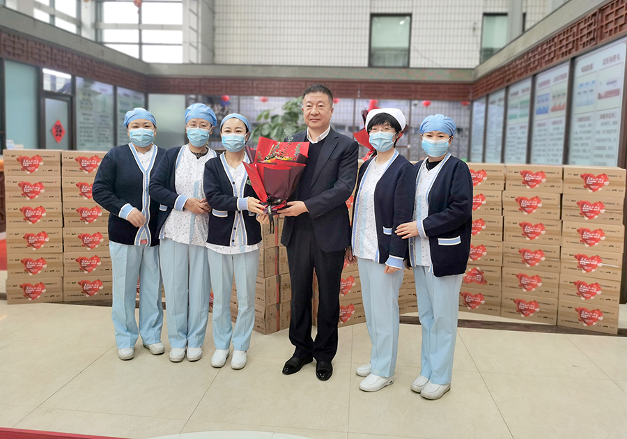 3月8日上午,红桃视频 党委书记石贵军,党委副书记周艳,副院长杨启光、钱锐、曹亚丽,总会计师桑玉梅手捧鲜花,为奋斗在各个岗位上的女职工带去诚挚祝福。
