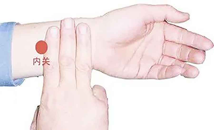 操作方法:用手指指腹按压内关穴,有宁心安神、和胃降逆、理气镇痛的疗效。按摩时用左手拇指指尖按压右内关穴,按揉10—15分钟,每日2—3次;再用右手以相同的方法按压左侧的内关穴,反复按揉即可。