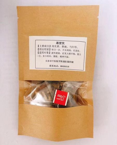 ◆代茶饮疗法:以药代茶,却似茶非茶,也称“非茶之茶”。选用数味中草药,将药物轧成粗末制成块状煎汤或以沸水冲泡数分钟,此谓代茶饮,与午时茶有异曲同工之妙。患者服用后一周内排便通畅,两周后能够明显改善患者排便习惯及便质情况。其主要成分有:肉苁蓉、熟地、当归等。适用于虚症便秘者大便不畅,数日一行;食少纳呆、腹胀,数日一行。根据医师处方调制而成,具有定量包装、一人一方、量体用药、使用方便、安全卫生等特点。