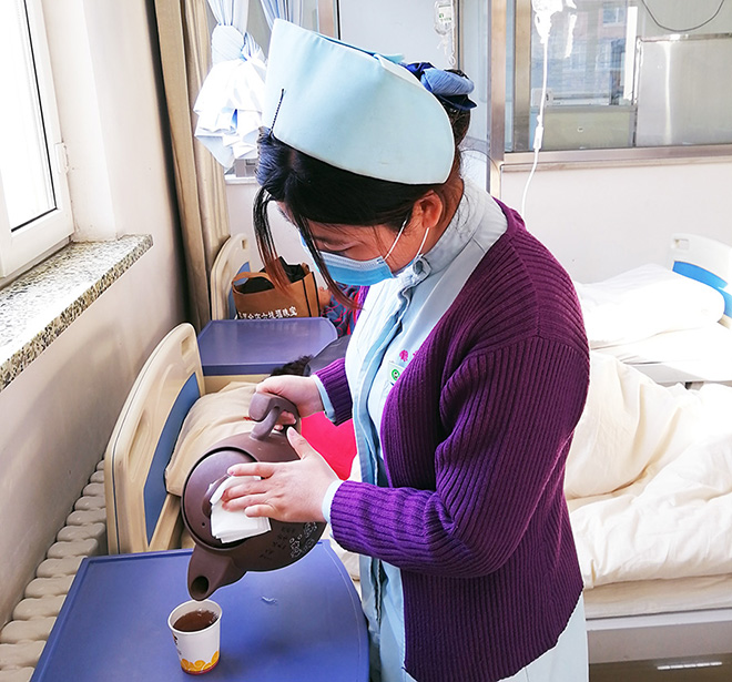 除了高效的治疗方案,临床护理也是对抗流感的秘诀之一。结合这次流感患者出现的高热、疲乏等严重症状,长春市急诊科的护理团队在护士长的带领下,反复巡视、体察病情、及时告知,为患者送去汤药,送上温水,叮嘱患者服药,不是亲人,胜似亲人。