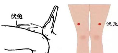 在大腿前面,正坐屈膝成90度,对方以手腕掌第一横纹中点抵其膝上中点,手指并拢压在大腿上,中指到达的地方即是。掌根按揉伏兔穴有缓解心慌和心跳过速,补养心血的功效。