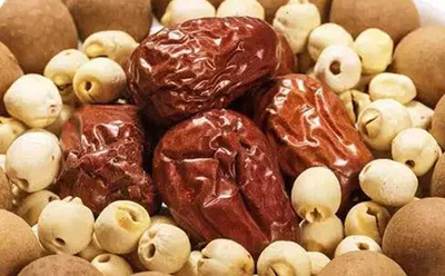 【材料】糯米1杯、小红豆100克、葡萄干、花生仁、莲子、红枣、桂圆干、松子各50克、砂糖300克。