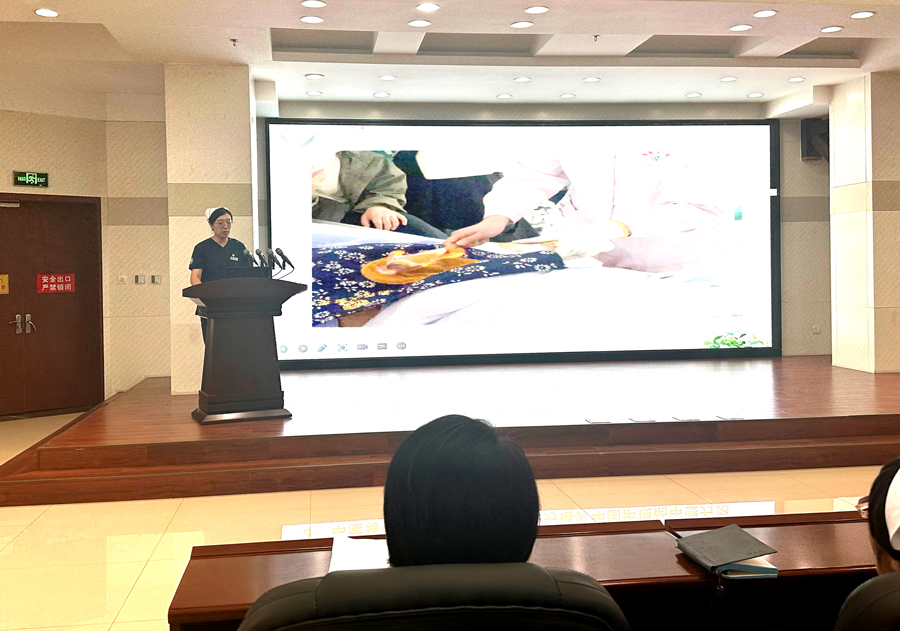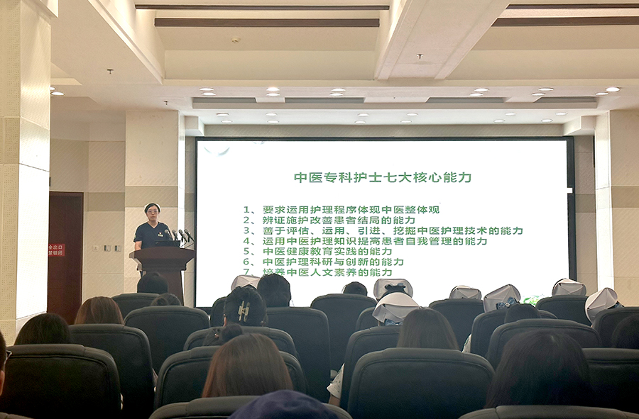 培训中,医院总部心病科护士长张储弋讲述了在全国护理骨干培训的学习收获和心得。她重点围绕先进的中医护理文化和理念进行了分享,包括中医基础理论、中医护理团队建设、中医护理优势技术、中医名护培养及中医护理特色门诊的建立等。