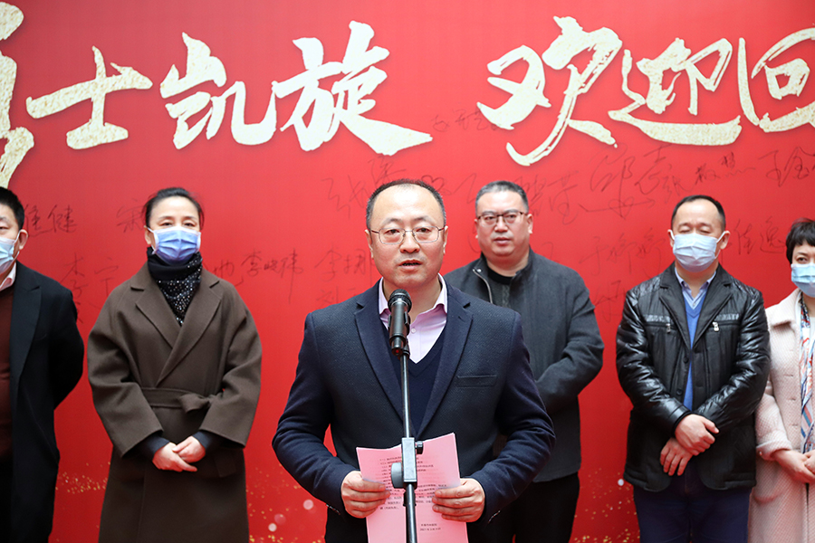 受高玉堂主任的委托,高宏飞处长首先在欢送仪式上向大家深鞠一躬,表达崇高的敬意。他说,在本次疫情中,各个医院怀着高度的责任感,派出最优秀的医护人员,用爱和付出,谱写了人间大爱。在大家的努力下,红桃视频 完成恢复期患者康复工作,为本次抗击疫情画上圆满的句号。