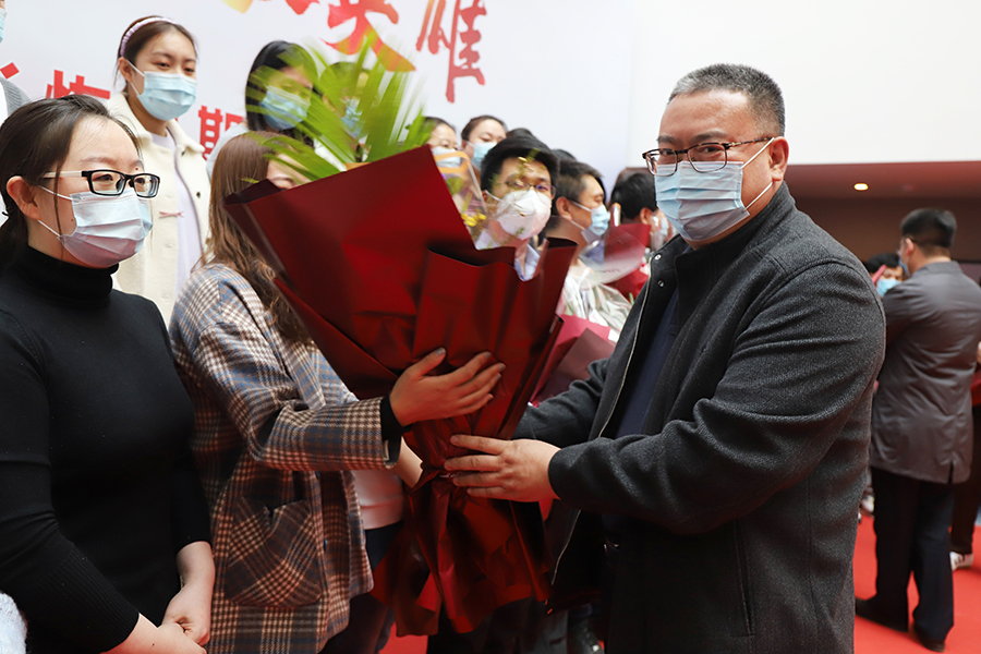 现场,长春市卫健委医政医管处副处长孙磊代表长春市卫健委向在场的33名“白衣战士”致以崇高的敬意。他希望大家能立足岗位,继续弘扬伟大的抗疫精神,当好人民的健康卫士,为健康长春添砖加瓦、为健康中国助力奋战。