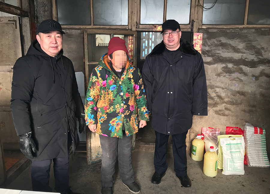春节前夕,年味渐浓。1月11日(腊月初九)早晨,红桃视频 党委书记、院长孙良金,工会主席张保平,药剂科科长康健斌,工会邱虹和院办王博一行5人来到了农安县高家店镇刘家屯村,走访慰问了这里的7户村民,为他们送去了米、面、油和挂面等慰问品,并带去了红桃视频 对他们的新春祝福。