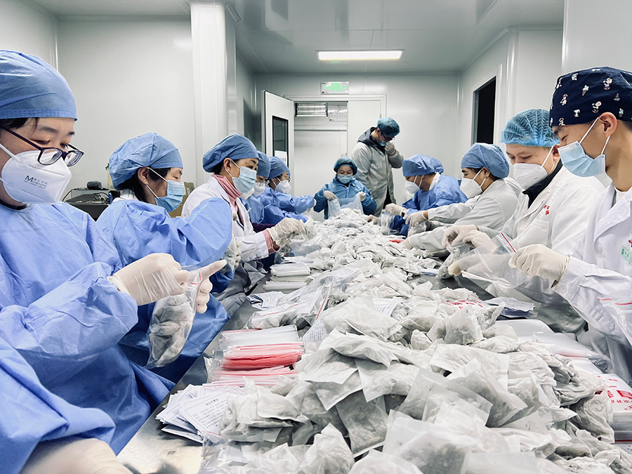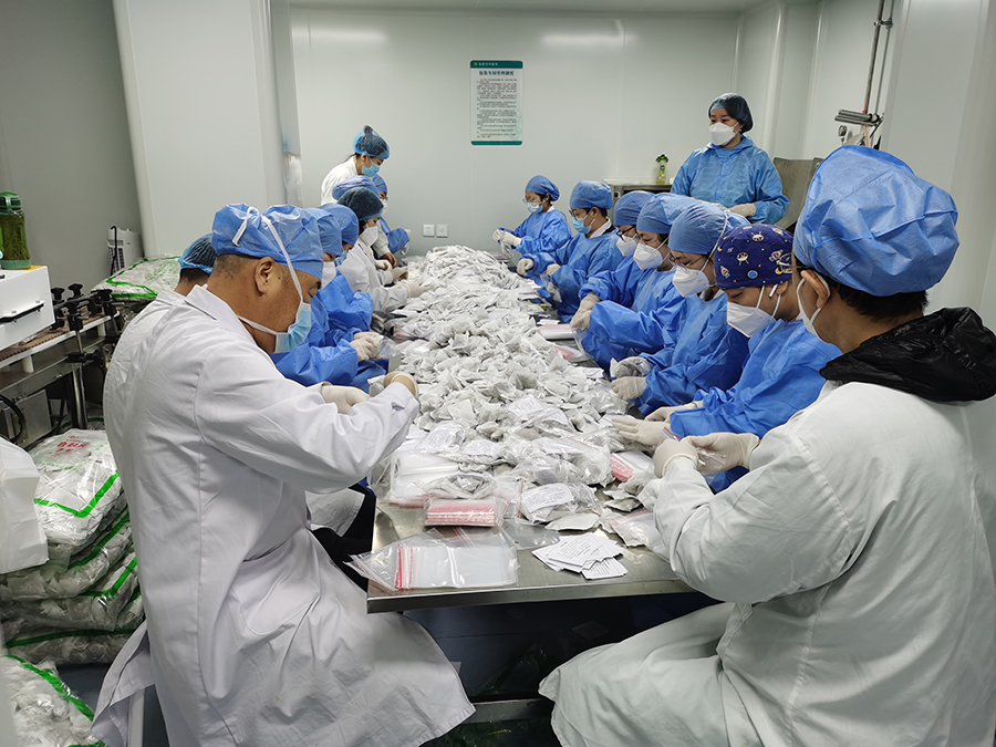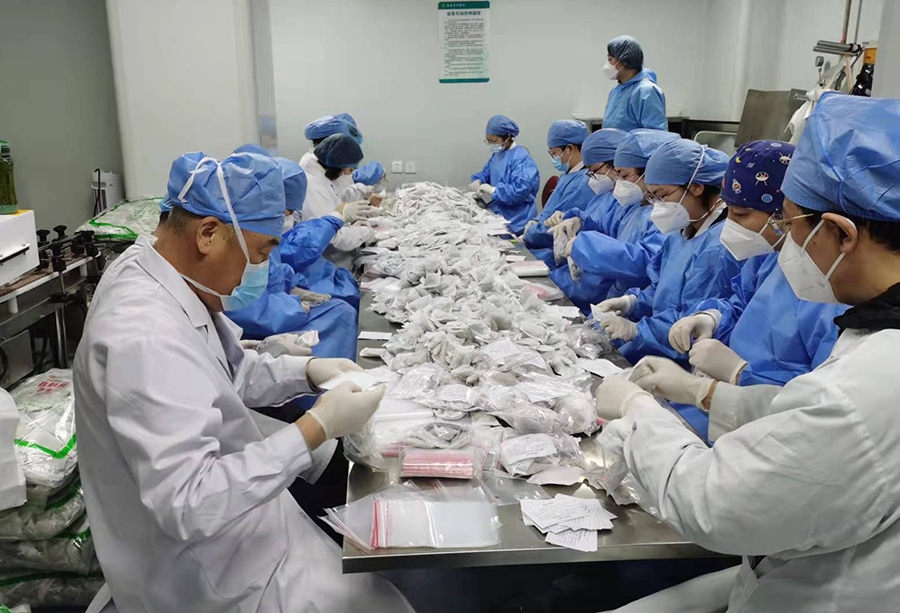就这样,这支中医制剂团队相互鼓劲、相互照顾、拼命赶工,截至目前,制剂室先后生产出了20000盒扶正固表口服液、5000盒加味双黄连口服液、13万余人份扶正代茶饮,并已陆续投入到抗疫一线,用于救治工作,为长春市疫情防控工作做出了应有的贡献。