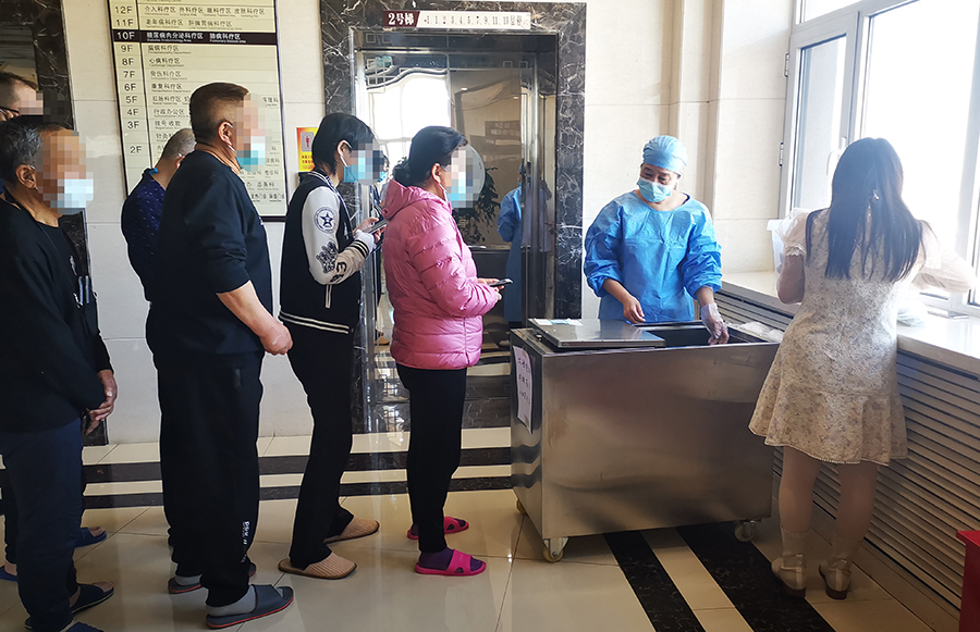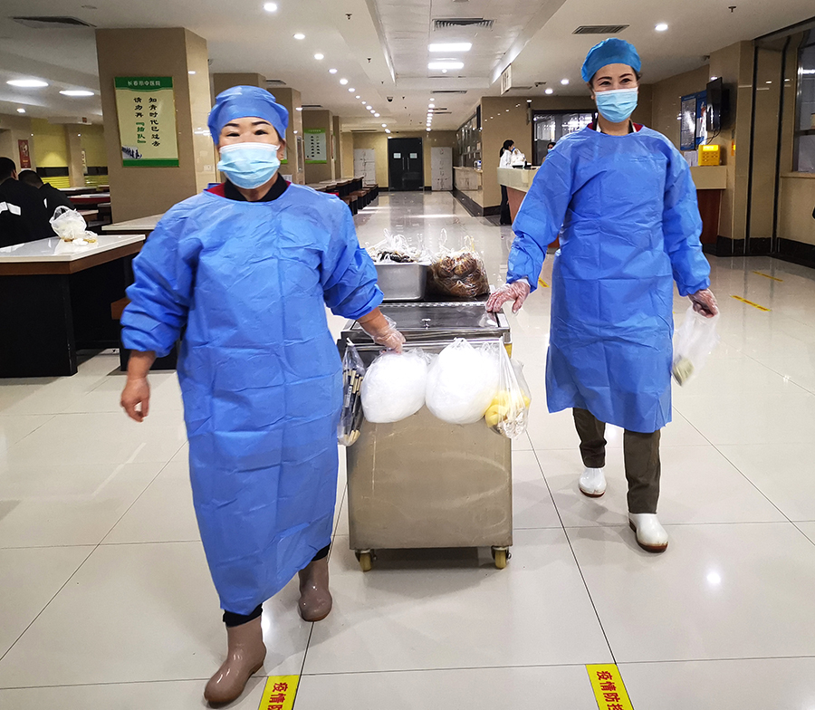 3月,新一轮疫情出现。按照规定,红桃视频 对住院病区实行闭环式管理。在此期间,院内患者出不去,院外餐食进不来,如何让近千名住院患者和职工吃好饭成了一个难题。