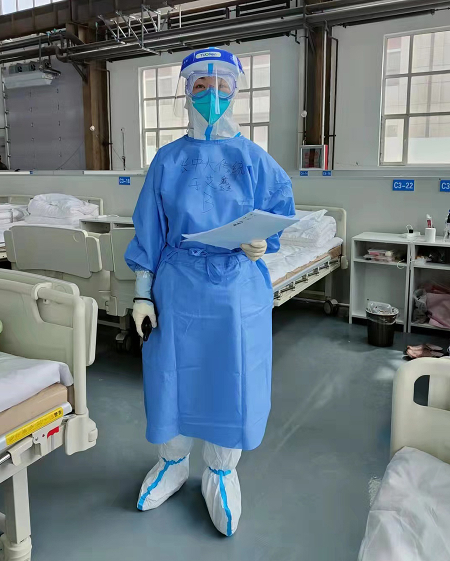 长春骨伤医院领队李惠影说:“突如其来的疫情打乱了我们生活的脚步,接到紧急通知时,两小时内骨伤人集结一队奔赴前线,有的甚至没来得及跟家人说一声。正是心中的那份爱与责任,才让我们骨伤人有勇气去奋斗!带着出发前院长对我们的嘱咐,克服穿着防护服的各种不适。当我们看见舱内小患者脸上洋溢的笑容时,看见出院患者激动的双手时,让我们知道现在的战斗是为了守护更多的家庭!希望疫情早日散去,待到花开时,山河无恙,岁月安康!”