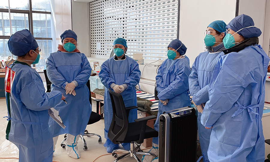 在舱内,护理组工作任务重,每一名护士都需要具备极强的心理素质才能扛得下来。30余年的临床经验与多次参与抗疫工作,让张丽霞积淀了坚实的业务技能和抗压能力。她不仅是一名战士,还是团队里的“知心大姐”。工作中,她总能及时发现团队里不安的情绪,并给予大家贴心的抚慰。