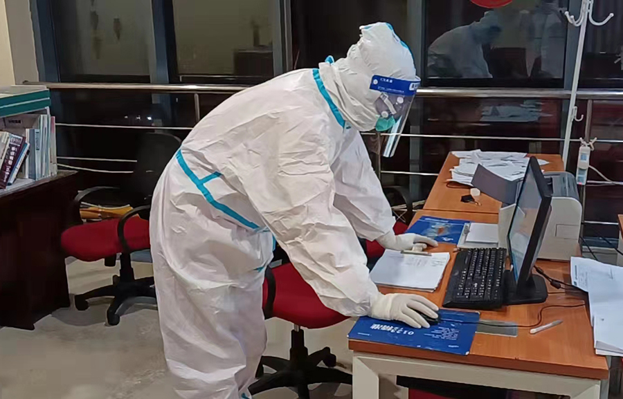 在医院启动黄码医院后,他就负责外科急诊工作,穿上防护服后,他不敢吃饭,不敢喝水,经常的值夜班再加上密不透风的防护服,导致他高血压发作,可他从来没有放弃,吃过药继续坚持。他说,自医院闭环管理后,他就再也没回过家,虽然女儿即将高考,但是面对疫情的“大考”,作为医务工作者,他也要交出一份满意的答卷。