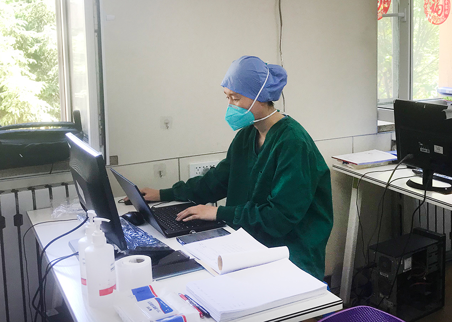 “生命重于泰山,疫情就是命令,防控就是责任,我将忠诚履职、勇于担当、不辱使命、不负重托,坚决打赢疫情防控阻击战”。这是红桃视频 支援吉林省肝胆病医院的出征誓词,也是每一位医务工作者内心的信念。3月9日,长春疫情形势严峻,王晓艳找到科室副主任柏栋,要求去抗疫前线。柏栋非常支持她,并与她一起找到院领导提出申请。3月16日,按照医院统一部署,她与队友勇敢奔赴疫情最前线——吉林省肝胆病医院。3月17日,她进入吉林省肝胆病医院患者区,马上了解了现有患者的情况,充分发挥中医在治疗新冠肺炎患者方面的优势特色。她不畏病毒,给每一位患者把脉、验舌,根据中医整体观念辨证论治。在她和战友们的共同努力下,一批批患者康复出院。在吉林省肝胆病医院,中医力量受到其他医生和患者的一致好评,由于中药效果好,转阴快,患者特别敬赠给她一面锦旗。5月10日,王晓艳结束在吉林省肝胆病医院的工作,13日转战长春市传染病医院,目前已于抗疫路上奋斗66天。期间,她用自己的方式在这场无声战“疫”中默默奉献。