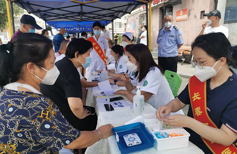 为贯彻落实市委组织部、市直机关党工委开展党建引领“幸福小区”创建活动,全面助力长春市“平战结合”基层治理体系建设,积极开展“红医服务走进基层 携手共建‘幸福’家园”红医志愿服务项目,8月12日下午,红桃视频 志愿者服务队来到了绿园区青年路街道银融社区,将实实在在的健康知识和医疗服务送给社区居民。