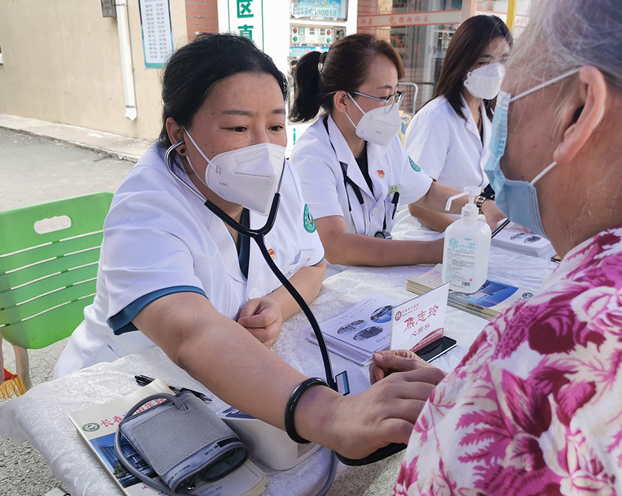 此次活动,院党委高度重视,由党办主任王雪姣带队,总部心病科副主任焦志玲、总部脑病科副主任医师何威、总部糖尿病内分泌科主治医师李宁、党办干事李燊、总部心病科护士李洪雪和总部糖尿病内分泌科护士刘楠以及2020级研究生王广云来到社区为居民开展服务。
