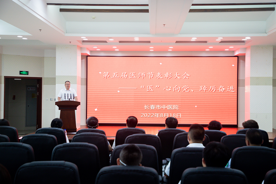 会上,石贵军院长为奋战在临床一线的医师们送去了节日问候,并简单回顾了医院的发展历程。他表示,正是一代代中医人的兢兢业业与推陈纳新,才使得医院的就医环境全面改善, 人才队伍逐步加强,综合服务能力不断提升,医院高质量发展迈入了“快车道”。特别是今年年初,在奥密克戎侵犯的危难之际,中医人攻坚克难、勇担重任,并取得了疫情防控的阶段性胜利。最后,石贵军院长对全体职工提出了希望:继续弘扬伟大抗疫精神,传承红医精神,不负党之重托,为民健康筑梦,在“敬佑生命、救死扶伤、甘于奉献、大爱无疆”的医者路上奋勇当先,阔步前行,为把医院建设成为中医特色突出的社会主义现代化中医院而努力奋斗。