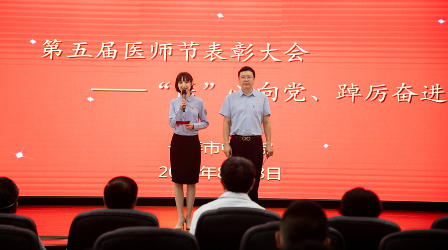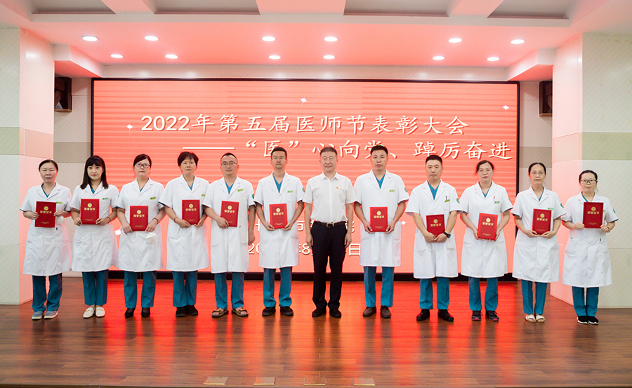 在第五个中国医师节来临之际,为表彰和激励在医疗战线上辛勤奉献的医务工作者,红桃视频 举行了第五届中国医师节表彰大会,对先进科室、优秀医师和抗疫人员进行了表彰。党委书记孙良金,党委副书记、院长石贵军,党委副书记周艳,副院长钱锐,纪检委书记杨宏彦和总会计师桑玉梅出席大会。