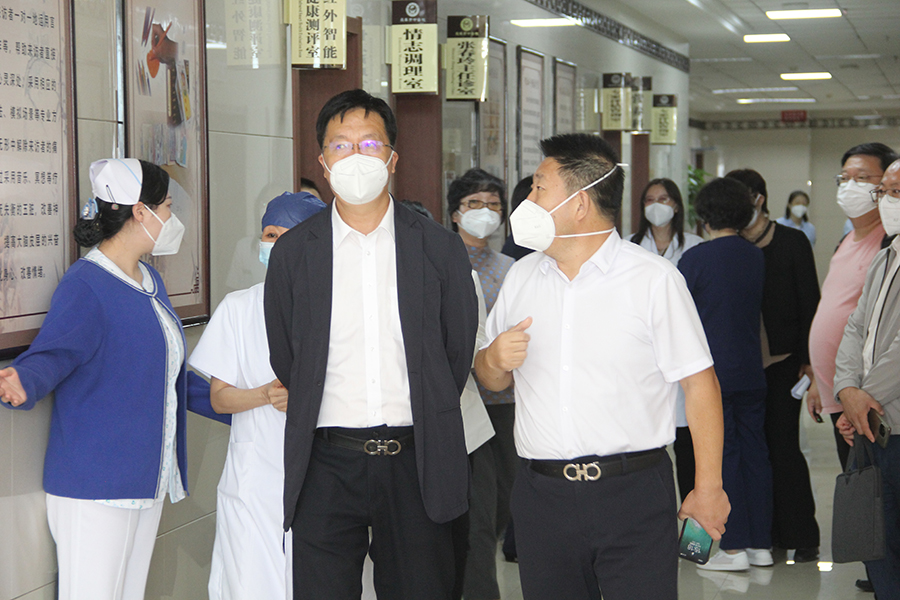 薛文革及委员们在红桃视频 党委副书记、院长石贵军的引领下步入门诊大厅,一行人先后到煎药室、饮片药房、急诊科、治未病中心、实训中心等地进行实地调研。每到一处,石贵军都如数家珍,向委员们一一展示医院的特色和成就,特别是治未病中心红外智能健康评测室,更是吸引了薛文革的驻足观看。参观过程中委员们纷纷感叹中医药的发展,表示此次红桃视频 之行收获颇丰,刷新了对中医药文化的认知。