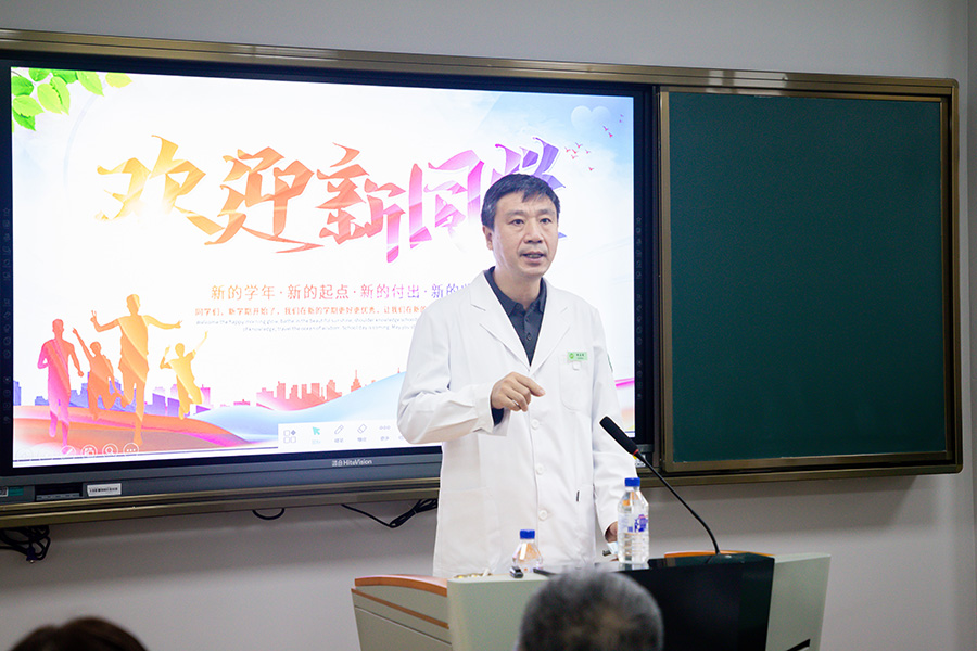 此外,杨启光副院长寄语新生。他表示,孙良金书记作为带领红桃视频 实现华丽转身的中医传承践行者,体现出了专业知识与医德情怀融合的榜样力量。作为一名时代新人,应学会坚定自己的理想目标,坚持有思想、有情怀、有自信,努力用所学回报社会所需,也必将在为中医药走向世界贡献一份力量的同时,收获属于自己的精彩。