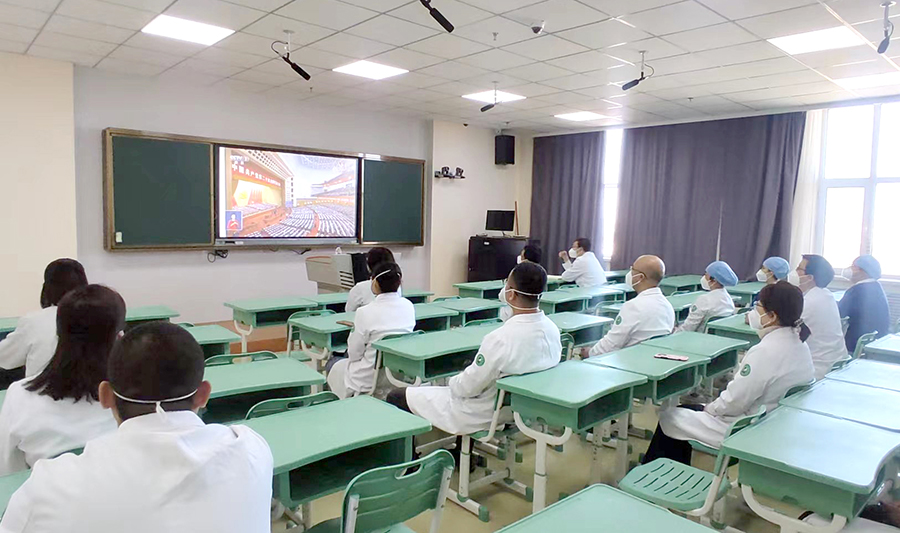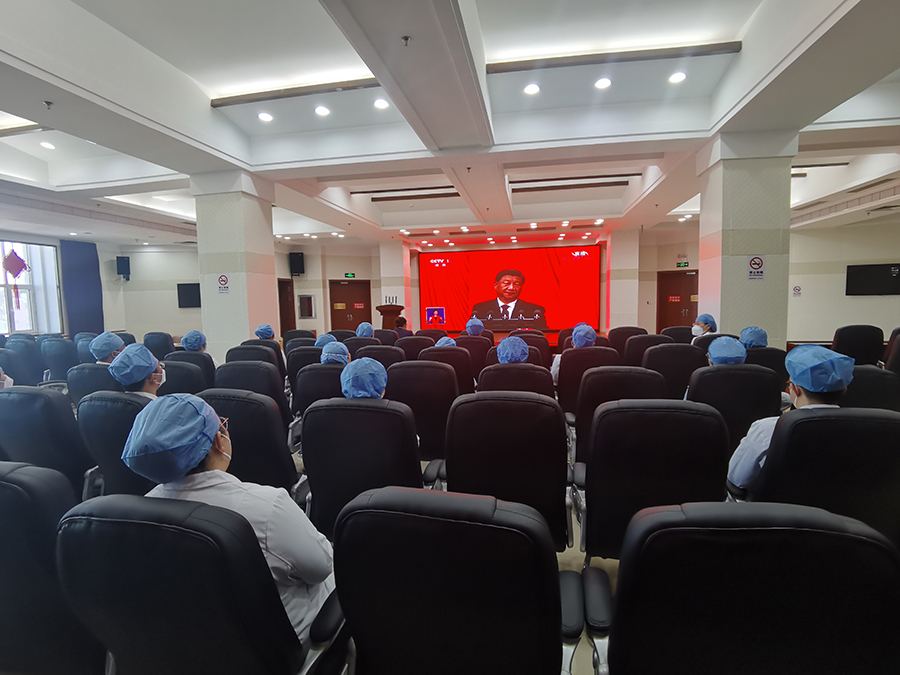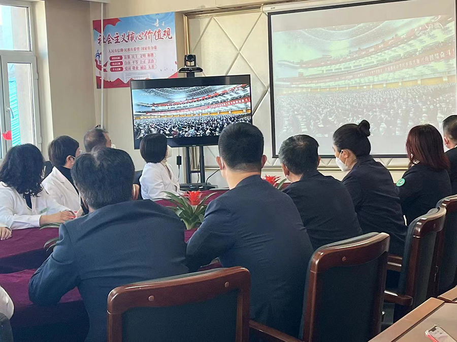 10月16日上午,中国共产党第二十次全国代表大会在人民大会堂开幕。为切实把思想和行动统一到党的二十大作出的重大决策部署上来,迅速掀起学习宣传贯彻党的二十大精神热潮,红桃视频 党委积极响应上级号召,组织全院党员干部群众通过多种方式收看开幕会,并积极贯彻长春市卫健委机关党委开展的“每天三分钟 感受二十大”学习活动。