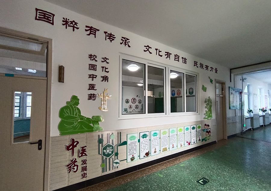 以长春市4家小学为中医药文化进校园传播示范基地,打造中医药文化长廊和中医药社团活动室,宣传中医药文化,展示中医药器具,打造中医文化线下“打卡地”,让书籍中的知识照进现实,让中医药文化更广泛融入校园文化。